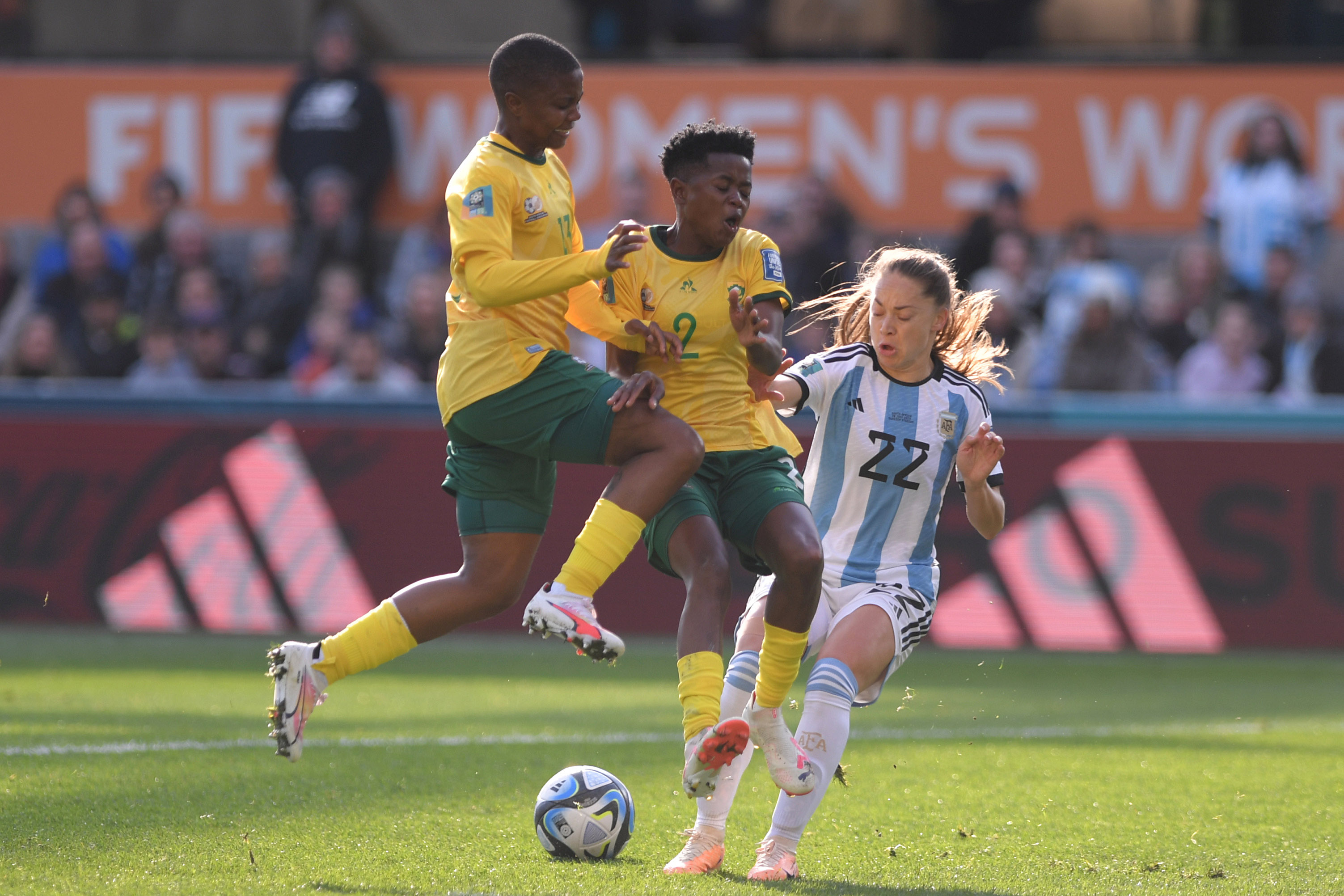 Los tantos de Argentina fueron marcados por Sophie Braun (29m. ST) y Romina (Núñez (34m. ST); mientras que las sudafricanas habían sacado dos goles de ventaja por las anotaciones de Linda Motlhalo (30m. PT) y Thembi Kgatlana (20m. ST).