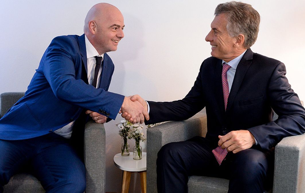 Juntos. Infantino y Macri fueron parte del anuncio en abril de Argentina junto a Uruguay y Paraguay como sede del Mundial 2030.