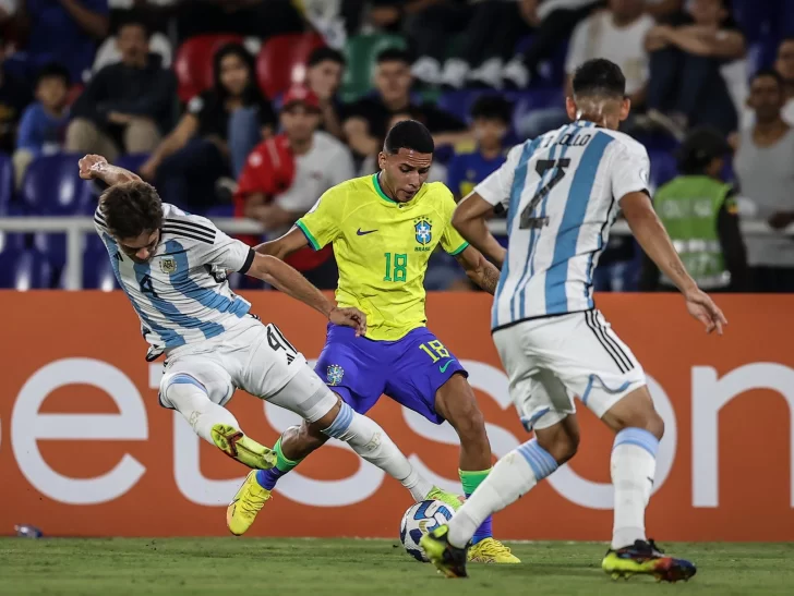 El seleccionado argentino Sub ’20 de fútbol perdió esta noche ante su par de Brasil, por 3-1, resultado que comprometió seriamente su clasificación a la segunda fase del Sudamericano de la categoría que se juega en Colombia y que otorga cuatro plazas para el Mundial Indonesia 2023, a realizarse entre mayo y junio.