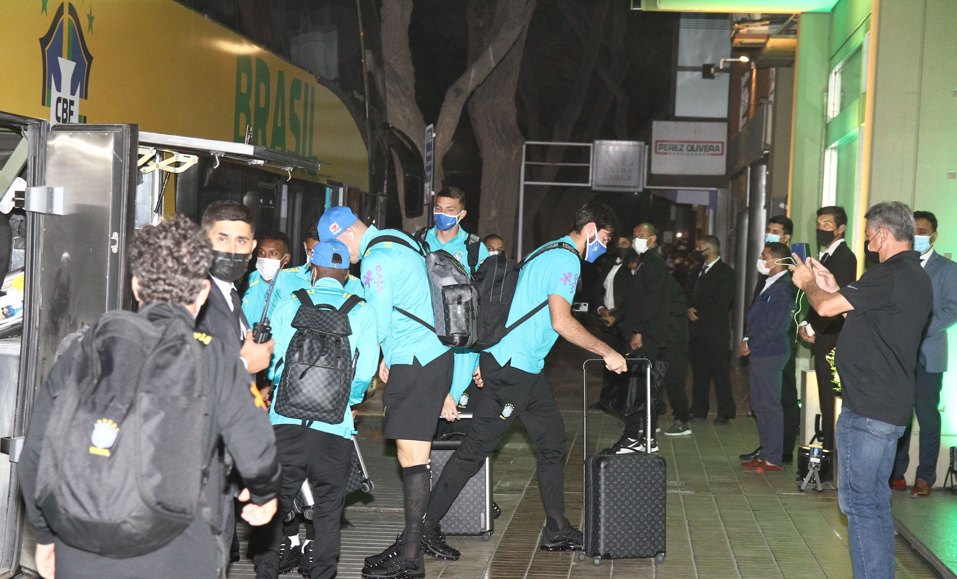 Una llegada lejos de lo esperado. Tanto para la Selección Argentina como también para los hinchas, que se quedaron en principio con las ganas de darle la bienvenida a sus ídolos. En medio de un fuerte viento Sur, el avión que trasladaba a la "Albiceleste" arribó casi dos horas más tarde y en la llegada al hotel, el colectivo ingresó por la puerta trasera esquivando a los 2 mil fanáticos que esperaban hacía horas en el lugar. A raíz de eso, cruzaron las vallas e invadieron la zona de prensa provocando algunos disturbios. Luego, ya más tranquilos todos, decidieron salir y saludar a la gente que los alentó todo el tiempo. Brasil, en tanto, arribó a las 23 al hotel capitalino.