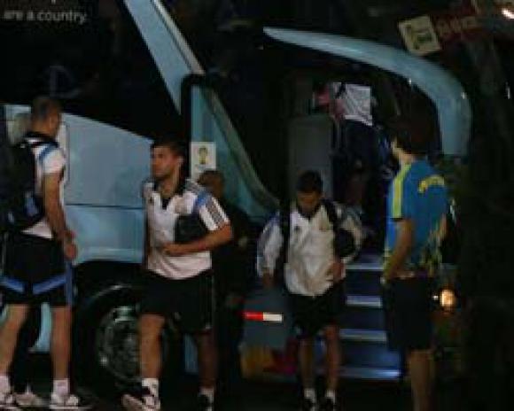 El subcapitán Javier Mascherano, el arquero Sergio Romero y el delantero Sergio ‘Kun‘ Agüero fueron los únicos en saludar a los fanáticos, que montaron su vigilia detrás de las vallas ubicadas sobre las márgenes de la calle.