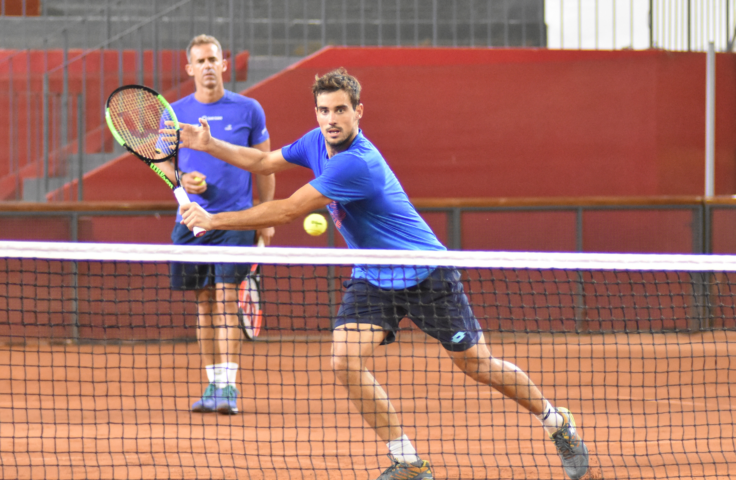 Allí comenzaron con trabajos distendidos que sirvieron de entrada en calor, como un pequeño match de fútbol tenis que incluyó incluso a los integrantes del cuerpo técnico y en donde participó, a la pasada mientras dejaban la cancha, a los jugadores chilenos. Luego sí, comenzaron con los primeros raquetazos para después pasar a la parte intensa del entrenamiento que se extendió por más de dos horas. Primero fueron Máximo González junto a Guillermo Durán y luego Guido Pella con Nicolás Kicker quienes se turnaron para entrenarse, siempre al mando de Orsanic.
