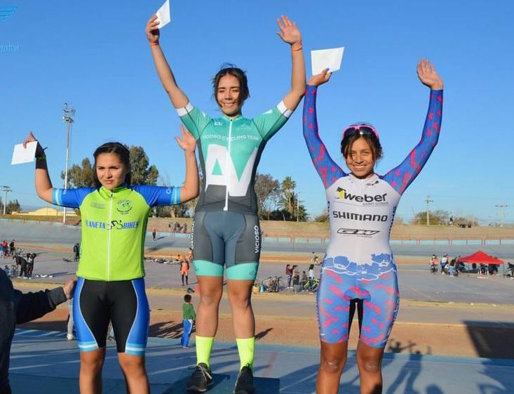 Las chicas. El podio femenino de la jornada dominguera del ciclismo de pista que se desarrolló en el velódromo de Rawson. En lo más alto, Maribel Aguirre.