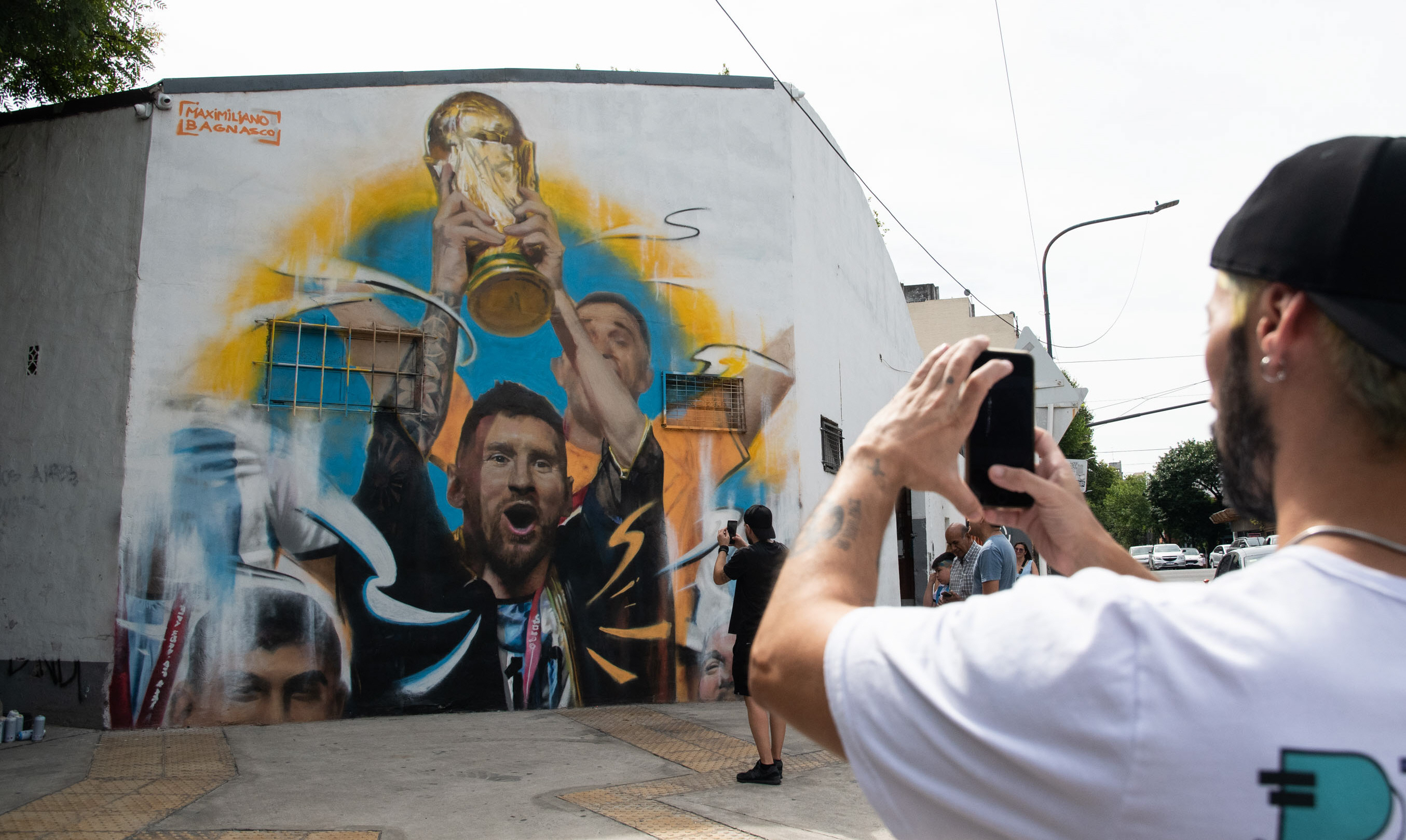 A diez días de la consagración de Argentina como campeón en el Mundial de Qatar, la imagen de Lionel Messi levantando la Copa del Mundo que conmovió al pueblo argentino se replica en distintos murales a lo largo del país, desde Córdoba y Santa Fe hasta la porteña Palermo y el territorio bonaerense de la mano de artistas que rápidamente salieron a eternizar a través del arte no solo el rostro del icónico delantero sino también la frase que se transformó en el hit del año: "¿Qué mirá’, bobo? Andá pa’ allá".