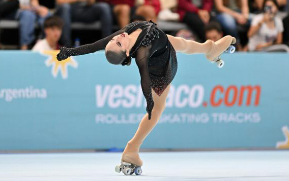 Las tres mejores patinadoras en el ranking mundial de patinaje están en competencia. Sira Bella Gallardo (España) lidera con 66,96 puntos, tras un programa en el que patinó al ritmo de la Cumparsita. Gioia Fiori de Italia ocupa el segundo lugar, con un programa con la música de Don’t cry for me Argentina (62,20). En tercera posición está la portuguesa Catarina Craveiro, quien con la música de St. James Ballroom suma 52,56.