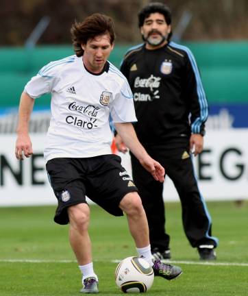 En eso está trabajando Maradona, en generar sociedades entre Messi y Di María, Messi y Verón, Messi e Higuaín, para que desde esos encuentros el delantero de Barcelona tenga los espacios para desequilibrar.