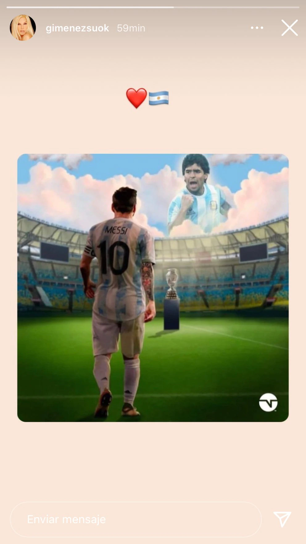 Mientras que su colega y compatriota, la actriz Mónica Ayos, radicada en México pero siempre con la mirada puesta en nuestro país, escribió: “Gol!!!!! Te llevo en el alma y no hay espacio en mi corazón en donde no estés presente. Te amo fuerte Argentina. Vamos carajoooooo”. Todo acompañado de una foto con la casaca albiceleste.