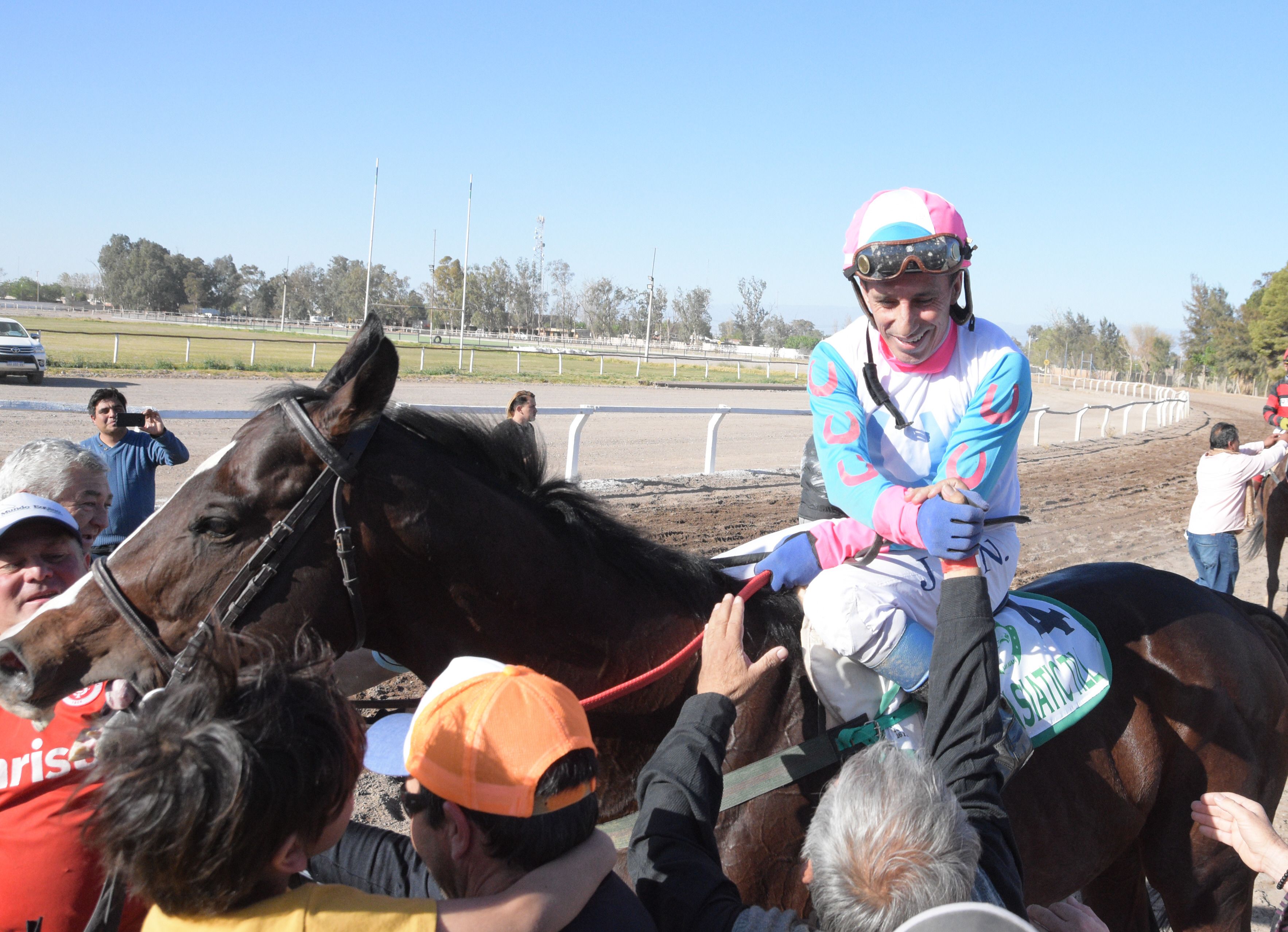 El público que ayer asistió al hipódromo de Rivadavia se agolpó contra la alambrada que lo separaba del sector de la premiación y al grito de "Chupino, Chupino", le hizo llegar su cariño a ese hombre que desde hace más de tres décadas se gana la vida montando caballos de carrera. Juan Carlos Noriega, les respondió con una sonrisa y se prestó a todas las solicitudes de selfies. Es que ayer fue notorio que puso su oficio para sacar lo mejor de un caballo que había llegado con muchas expectativas el año pasado y que no daba pie con bola. "Rébora (Oscar el cuidador) me dijo que había repuntado, y que lo trajera cerca del candidato porque la carrera la harían otros caballos y que lo exigiera en la parte final porque había respondido muy bien en los entrenamientos", confió después de cumplir con la báscula y demostrar que con todos los elementos, monta y demás, pesaba los 61 kilogramos estipulados.