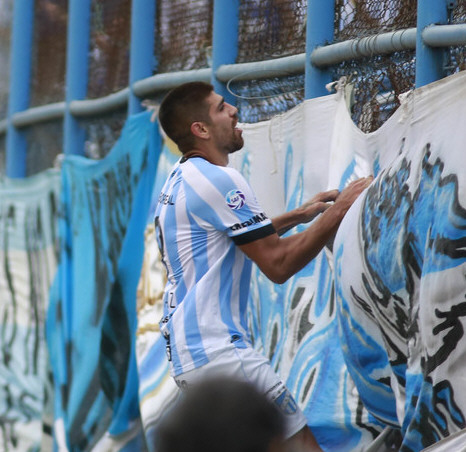 Lo festeja. Leandro Díaz ya convirtió el gol y lo festeja en el alambrado.