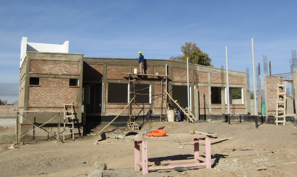 Pese a la pandemia, no se detiene la construcción del estadio de club Andacollo de Tamberías, en Jáchal. El complejo tendrá un playón deportivo, vestuarios, SUM, cierre perimetral y vallado olímpico del campo de juego.