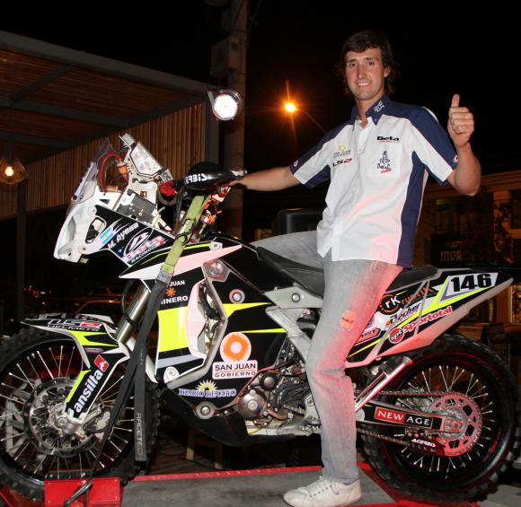 Comenzó la cuenta regresiva. A días de comenzar el Dakar 2015, Mauro Ayesa piloto DIARIO DE CUYO que participará en la competencia de Rally Raid más dura del mundo, realizó anoche la presentación de la moto con la que competirá durante casi dos semanas por Argentina, Chile y Bolivia. La Beta Factory 450cc será la encargada de recorrer los 9 mil kilómetros que corresponderán a las 14 etapas. La ceremonia, que contó con Franco Mugnani, se llevó a cabo en el local Núbile en Rivadavia y contó con la presencia de varios sponsors, como Francisco José Montes de DIARIO DE CUYO; Eduardo Danna, empresa que hidratará al piloto y Alberto Ontiveros, quien también competirá en el mismo equipo ‘PCP‘.
