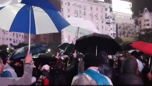 Buenos Aires.- El frío y la lluvia torrencial que cayó sobre la Ciudad de Buenos Aires no fueron impedimento para los fanáticos de Lionel Messi. Cientos de hinchas se reunieron esta tarde en el Obelisco porteño para pedir que el futbolista rosarino no abandone la Selección Argentina.