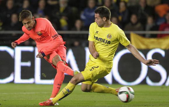 El cotejo de desquite en semifinales, que se disputó en el estadio “El Madrigal”, tuvo como goleadores en el equipo visitante al delantero brasileño Neymar (PT 3min y ST 42 min), asistido por Messi en el primer tanto, y al atacante uruguayo Luis Suárez (ST 28 min), con asistencia de Mascherano, que señaló su cuarto gol sobre tres compromisos entre Liga de Campeones, liga española y Copa del Rey.