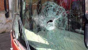 "Nunca había pasado, y menos con criaturas", indicó Beraldi, quien resaltó que si bien el proyectil "le pegó al conductor y lo fracturó, pudo pasar algo peor". El chofer "tuvo la lucidez de poner el brazo. Si le pega en la cabeza, pierde el control del micro y provoca un desastre", señaló.