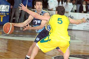 Liderados por Luis Scola, los argentinos ganaron 29-15 el cuarto inicial y se marcharon 55-32 al descanso largo, resultado ideal para que el Oveja moviera el banco. Cantero, Quinteros, Kammerichs, Scola y Román González habían sido los cinco de entrada. Luego se repartieron minutos Leo Gutiérrez, Figueroa, Diego García, Weigand, Vay, Pelussi y Juan Gutiérrez.