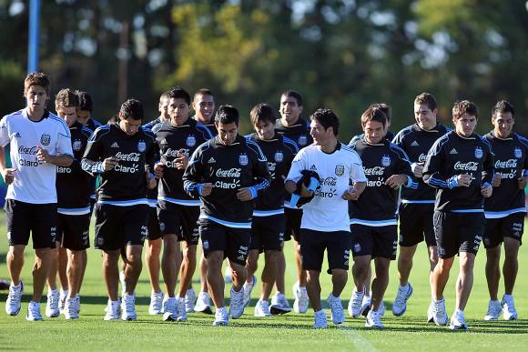 En el entrenamiento, al que asistió el director general de selecciones de fútbol, Carlos Salvador Bilardo, Batista comenzó el trabajo con ejercicios regenerativos (los futbolistas vienen de jugar el fin de semana por el torneo Clausura) y lo cerró con ejercicios con pelota, para lo que armó diferentes grupos.
