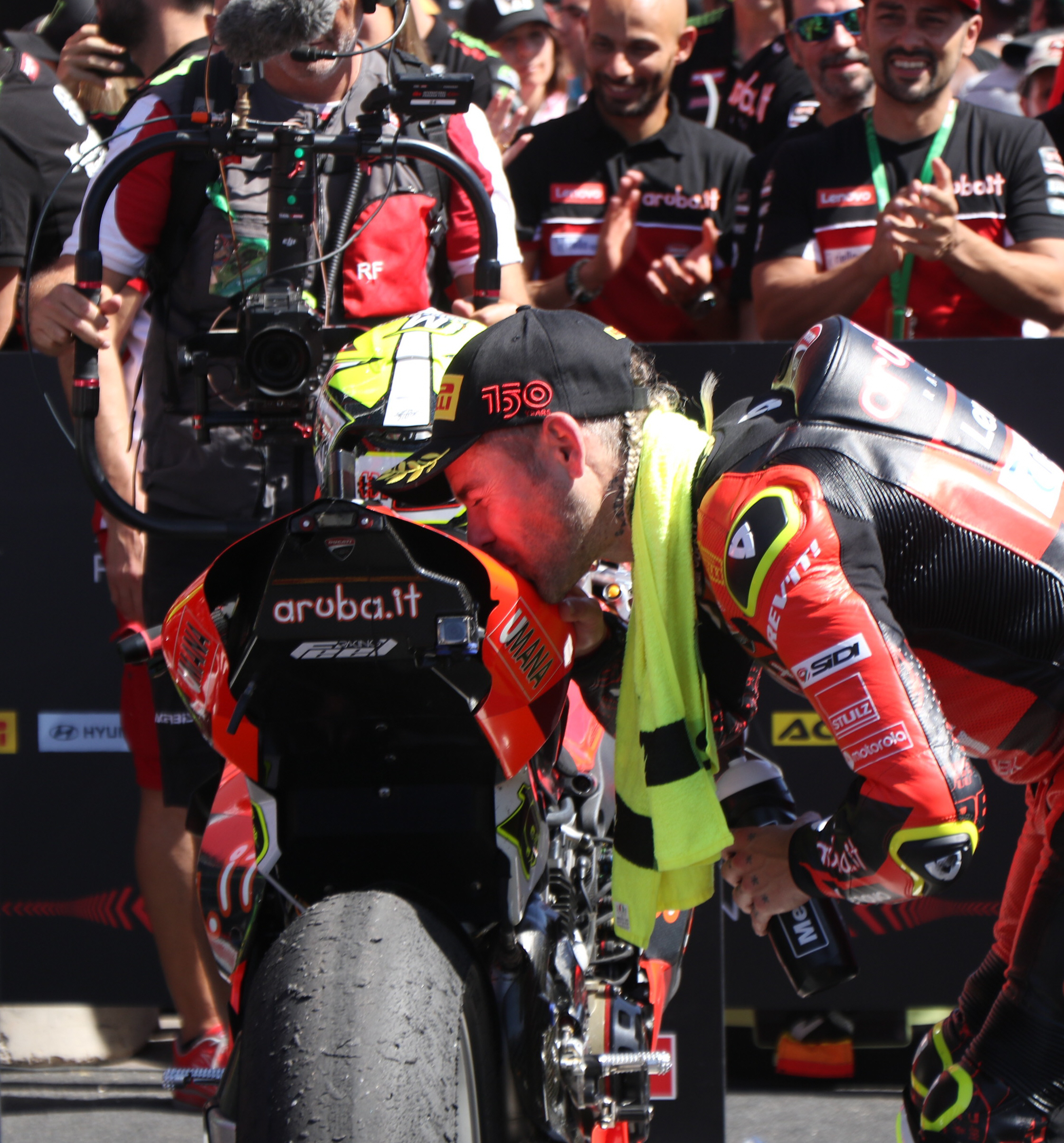 En tanto, ya más tranquilo, insistió en que pese a estar muy cerca del título no quiere pensar en eso. "Cuando digo que no estoy pensando en el campeonato es verdad. No pensé en eso en el primer Round y no lo estoy haciendo ahora. ¿Por qué pensar en el futuro si estoy disfrutando el presente? Disfruto cada carrera, cada curva, cada vuelta y cada batalla, así que para mí no es necesario pensar en los puntos. Sólo quiero divertirme con Toprak, Jonathan y el resto de los pilotos, intentar sacar el máximo de mi Ducati. Seguro que si te relajas es peor, porque no puedes disfrutar del presente y no puedes dar lo mejor de un. El resultado del campeonato lo veremos después de la Carrera 2 en Phillip Island", indicó.