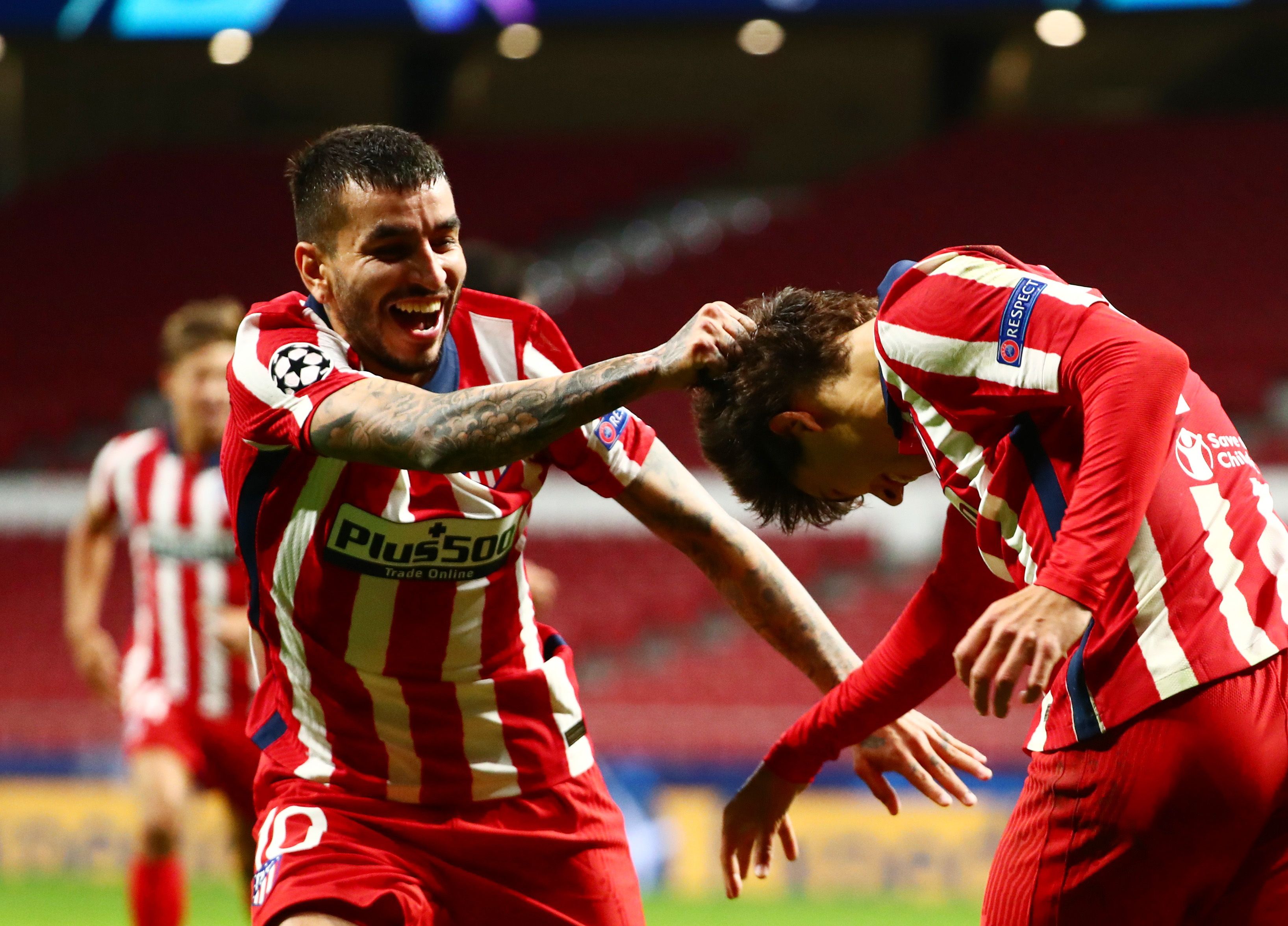 Desahogo. El argentino Angel Correa celebra con el autor del tercer gol, el del triunfo para el Atlético de Madrid, Joao Félix.