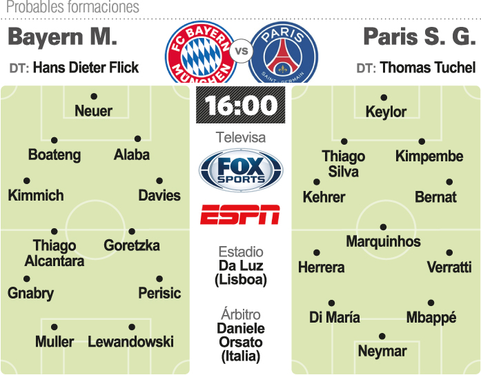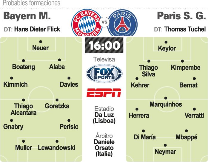 El PSG, liderado por el astro brasileño Neymar, quizá el mejor jugador del mundo en la actualidad, llegó por primera vez a la gran final y busca un inédito título ante el poderoso Bayern que jugará su undécima definición y ganó cinco veces la "Orejona" (1974, 1975, 1976, 2001, 2013), una ante un equipo francés, al Saint Etienne en 1976.