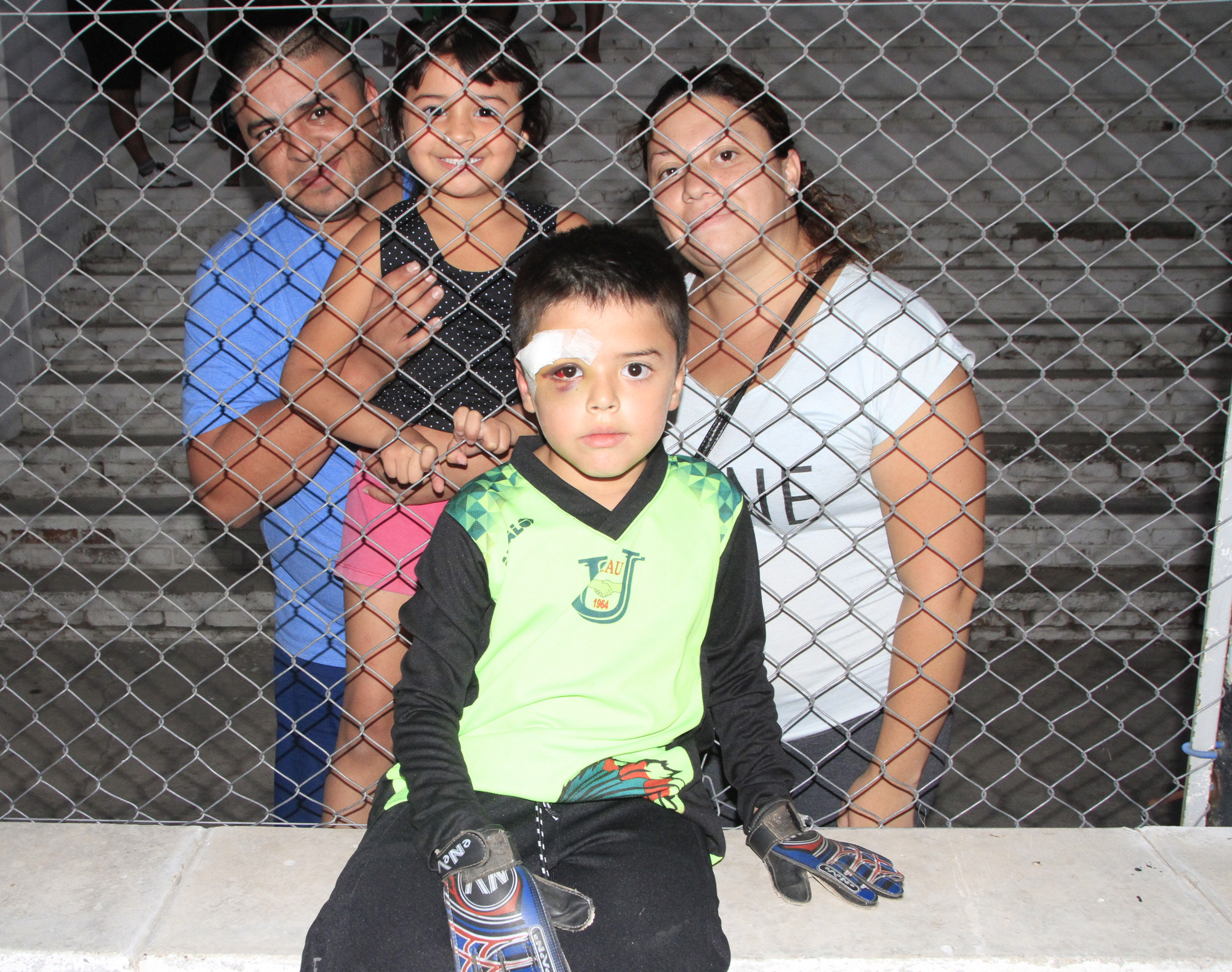 Para Benja este Mundialito es especial por ser el primero que disputa. El pequeño de la categoría 2009 del Azul venía preparándose y esperando con ansias el torneo, pero el 1 de enero jugando a la pelota con sus primos, se cayó y sufrió un corte justo arriba del ojo derecho. Esa herida le demandó 7 puntos de sutura y por recomendación del médico, lógicamente no puede jugar al fútbol hasta que le retiren los puntos. Pero igual, Benja no quiso perderse el certamen y asiste a todos los encuentros donde jueguen sus compañeritos.