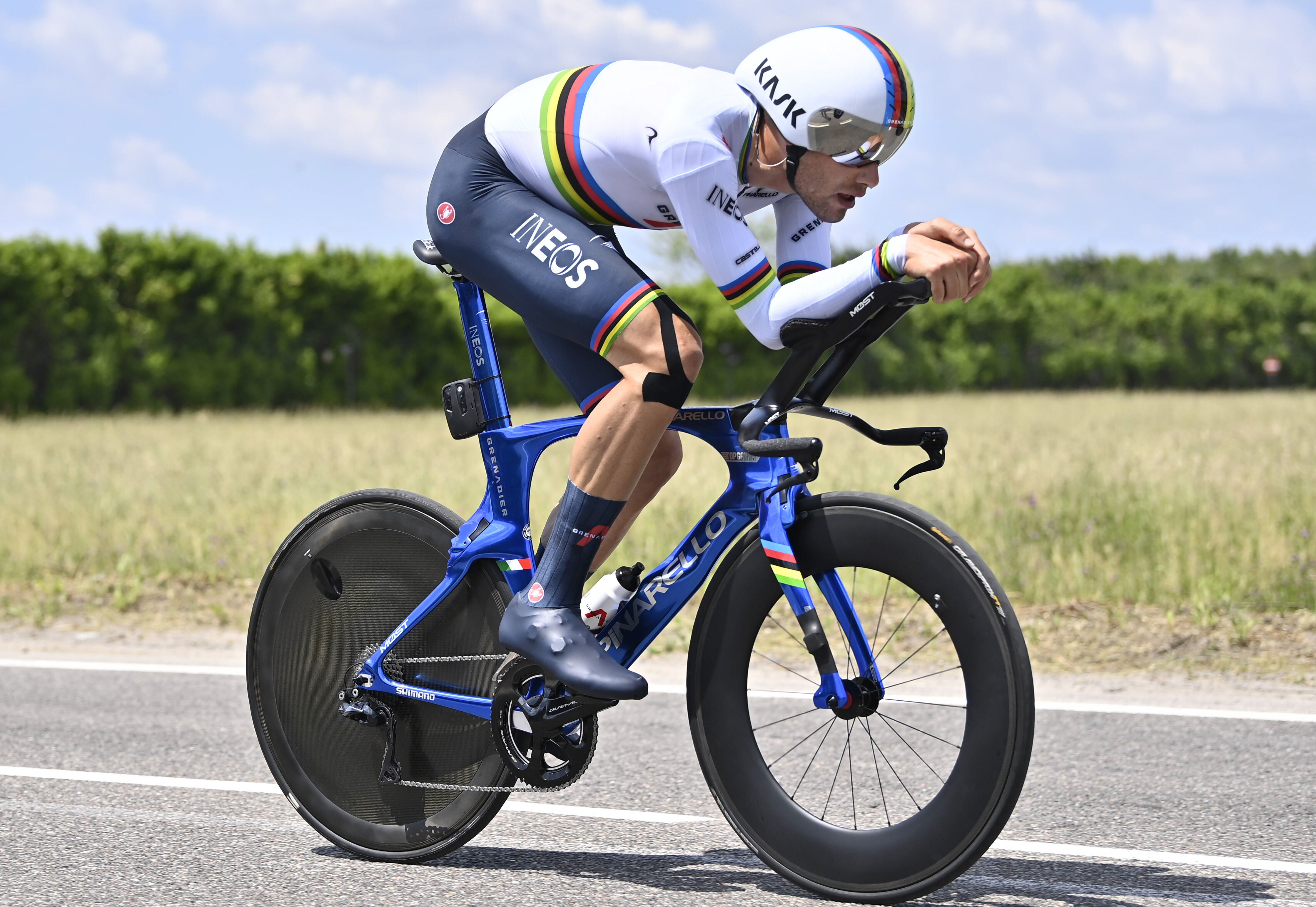 Heredó el dorsal con el número 1 reservado para el inglés Tao Geogenhart, compañero suyo en el INEOS que el año pasado sorprendió en Milán, cuando ganó el Giro en la contrarreloj final y que en esta temporada correrá el Tour de Francia. Para la "cátedra", por antecedentes y condiciones era el "1". La única duda era saber como respondería su físico a tres semanas de exigencia. Él mismo reconoció que "aún sentía" algunas molestias en su espalda, pero que en el día a día sus sensaciones mejoraban.