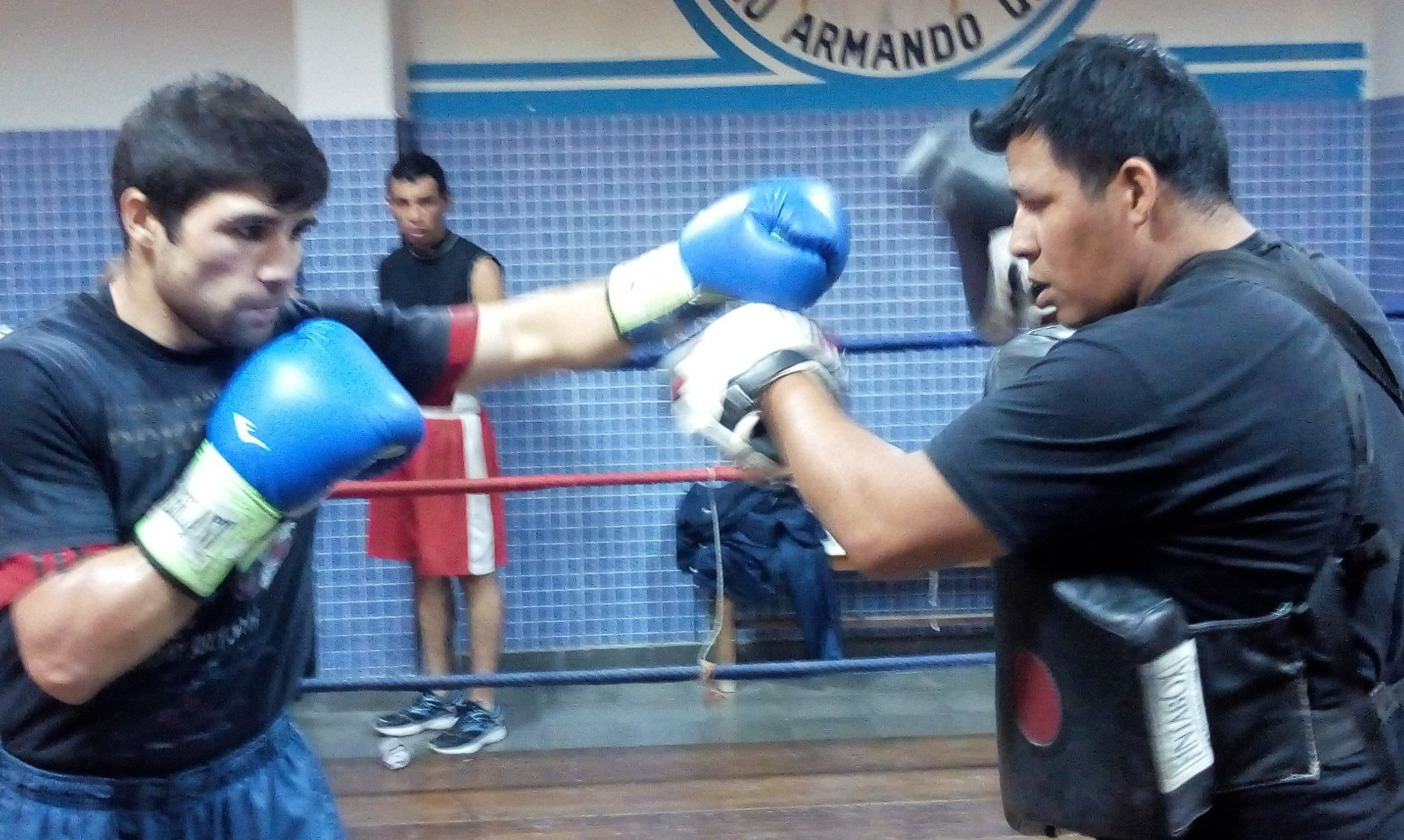 El sonido de los golpes a las bolsas retumba en los rincones del gimnasio del Club Julio Mocoroa. Por un lado están los pibes que se ilusionan con recibir el aliento del público bajo las luces del ring. Y por el otro, los dos profesionales que tendrán acción la semana próxima. Carlos Sardinez y Andrés Tejada, concentrados desde hace un mes en las entrañas del estadio Aldo Cantoni dividen sus días en turnos matutinos de footing en el Parque de Mayo y sesiones de gimnasio en los que trabajan a destajo con Brian Martínez y Leonardo Ortíz, los dos noveles profesionales mendocinos que son sus sparring y comparten su alojamiento.