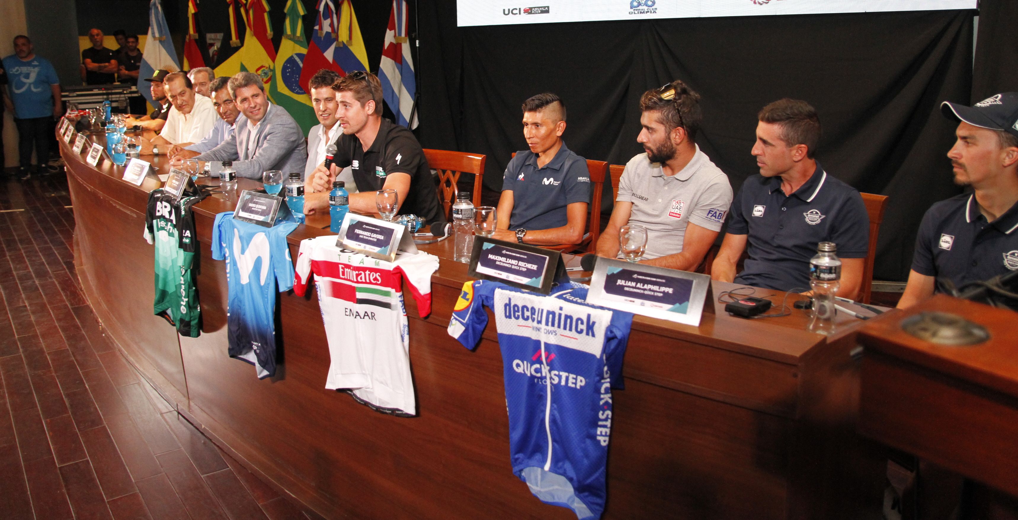 El gobernador Sergio Uñac, el secretario de Estado y Deportes, Jorge Chica, junto al presidente de la UCRA (Unión Ciclista de la República Argentina), Gabriel Curuchet, el presidente de la Federación Ciclista Sanjuanina, Juan José Chica, y el presidente del Pedal Club Olimpia, Juan Ernesto Pacheco; presidieron la mesa en la que también estuvieron los ciclistas Maximiliano Richeze y Julian Alaphilippe (Deceunink Quick-Steep), Fernando Gaviria (UAE Emyrates), Nairo Quintana (Movistar Team), Oscar Sevilla (Team Medellín), Mark Cavendish (Dimension Data) y Tiesj Benoot (Lotto Soudal).