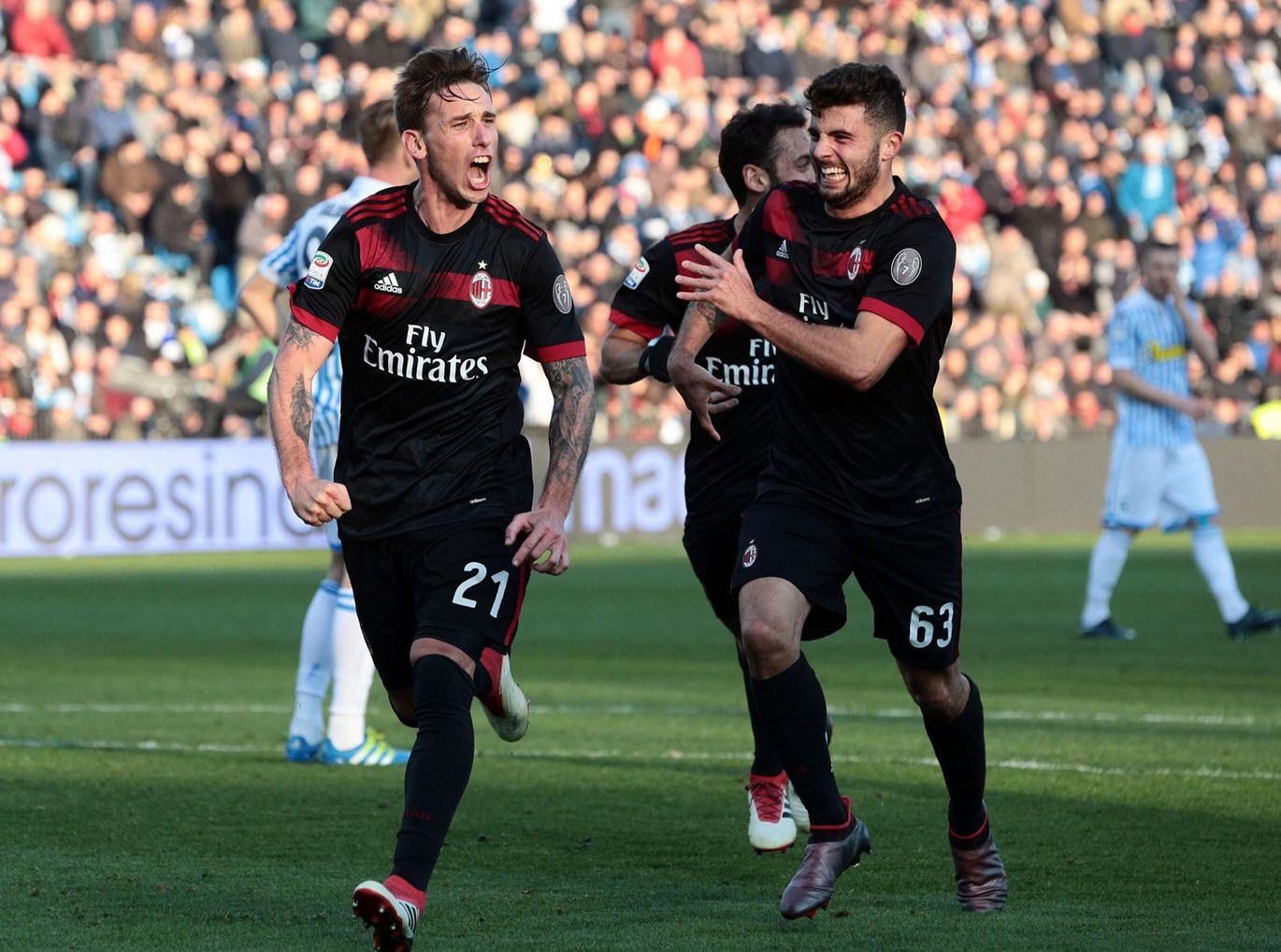Biglia metió el tercer tanto de su equipo a los 27 minutos del segundo tiempo, mientras que el atacante italiano Patricio Cutrone (2m. PT y 20m. ST) y el punta italiano Fabio Borini (45m. ST) le dieron forma a la goleada. Con esta victoria, Milan suma 38 puntos y se acercó a los puestos de competencias europeas de la próxima temporada, al tiempo que Spal 2013 continúa con 17 y sigue en descenso. Por su parte Napoli goleó como local a Lazio por 4 a 1 y recuperó la punta del certamen que le había arrebatado el viernes Juventus. Con la victoria, el equipo napolitano llegó a los 63 puntos y está uno por encima de “la Juve” (62). En el otro encuentro de este sábado, el argentino José Luis Palomino marcó el tanto de Atalanta en el empate 1-1, de visitante, contra Crotone.