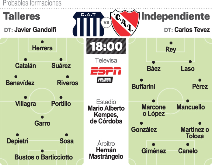 Independiente visitará a Talleres, en Córdoba. El equipo de Avellaneda, que empezó la Copa de la Liga con la meta de salvarse del descenso, y que con el correr de los partidos, bajo la dirección técnica de Carlos Tevez, cambió el objetivo y se ilusiona con pelear el título. Por cómo están las cosas en la Zona A, para no depender de otros resultados los "Rojos" pasan con un empate, y hasta con una derrota si se dan otros resultados, pero conociendo a su técnico, que le transmitió confianza e insufló un espíritu ganador, con aciertos y errores, saldrán a ganar para evitar sobresaltos.