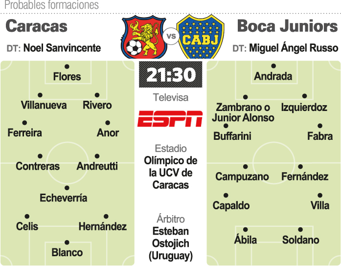 Boca Juniors debutará hoy en una nueva edición de la Copa Libertadores cuando enfrente a Caracas de Venezuela como visitante, mientras se prepara para la definición de la Superliga en el duelo directo con River Plate. El partido, correspondiente al Grupo H, se jugará en el Estadio Olímpico de la UCV de Caracas a partir de las 21.30, hora argentina, será controlado por el uruguayo Esteban Ostojich y televisado por ESPN. Boca, invicto frente a equipos venezolanos, afrontará una semana importante con el inicio de una nueva ilusión en la Copa Libertadores, que no gana desde 2007.