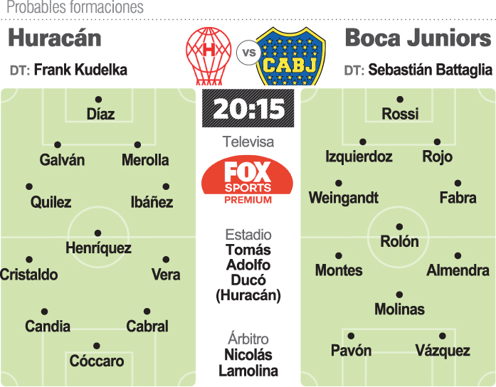 Boca Juniors visitará hoy a un afinado Huracán en el estadio Tomás Adolfo Ducó, reducto donde el xeneixe no pierde hace 27 años con el dueño de casa, en el marco de la 16ta fecha de la Liga Profesional de Fútbol (LPF). El partido, arbitrado por Nicolás Lamolina, comenzará a las 20.15 y será televisado por Fox Sports Premium.