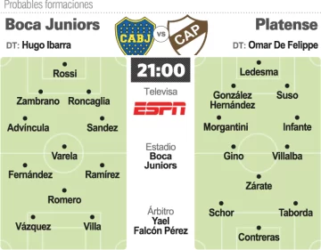 Enfrente estará Platense, que tiene 18 puntos y apenas perdió un partido, el clásico con Tigre (3-0), aunque empató demasiado (seis veces). El DT del "Calamar", Omar De Felippe, repetirá el equipo que igualó la semana pasada con Barracas Central con la intención de darle continuidad sobre todo al trío de ataque que componen los ex Boca Mauro Zárate y Vicente Taborda, más Rodrigo Contreras.