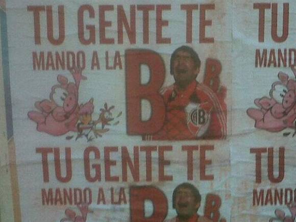 Minutos antes de que se abrieran las puertas del estadio aparecieron por las calles donde ingresarán los "Millonarios" afiches alusivos a su paso por la B Nacional.