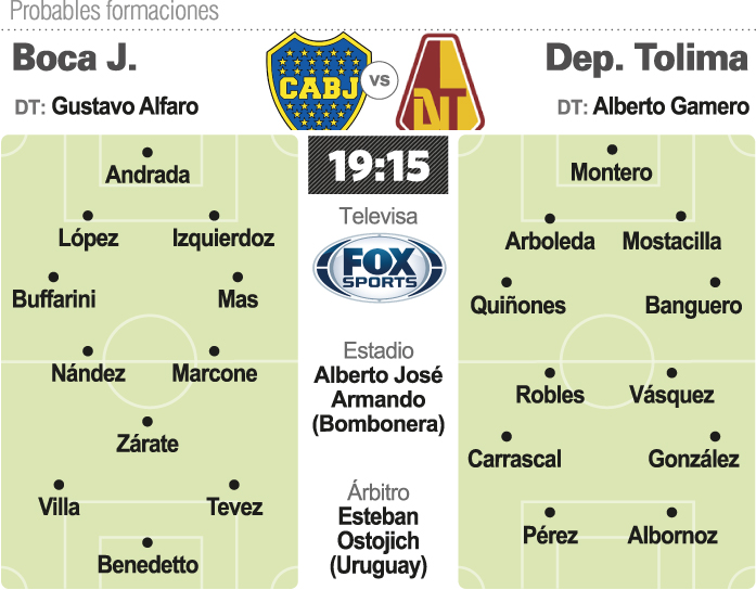 Boca Juniors recibirá hoy a Deportes Tolima, de Colombia, en busca de su primer triunfo en la Copa Libertadores de América por la segunda fecha del grupo G del torneo, luego del empate sin goles en su debut ante Jorge Wilstermann, de Bolivia. El partido se jugará en la Bombonera desde las 19.15, con arbitraje del uruguayo Esteban Ostojich y transmisión de Fox Sports y Facebook Watch. Luego del debut en la altura de la ciudad boliviana de Cochabamba ante Jorge Wilstermann, el equipo de Gustavo Alfaro se presenta ante su gente en el torneo más importante de Sudamérica, del que es vigente subcampeón, en pos del primer triunfo.