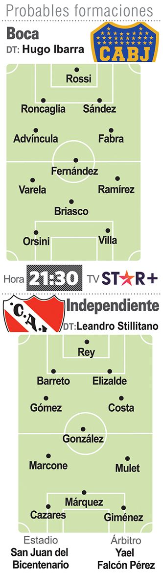 Boca e Independiente, que tendrá el debut del delantero sanjuanino Matías Giménez, jugarán hoy el clásico que abrirá el triangular Fútbol Internacional de Verano, del que también formará parte Everton de Chile, con sede en el estadio Bicentenario de San Juan.