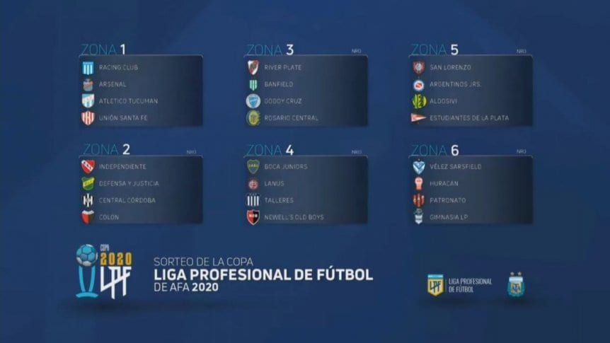 Como el nuevo campeonato tiene formato de copa nacional, no se jugará un torneo largo de todos contra todos. Los 24 equipos quedaron divididos en seis grupos de cuatro equipos cada uno. Los cabezas de serie de cada zona fueron Boca, River, Independiente, San Lorenzo, Racing y Vélez, que le ganó la puja por ese lugar a Huracán.