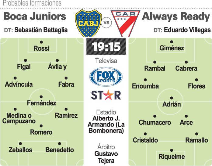 Boca Juniors recibirá hoy al sorprendente Always Ready de Bolivia que debutó con un triunfo como local sobre Corinthians, de Brasil, en un partido determinante para el futuro del "Xeneize" en el Grupo E de la Copa Libertadores de América.