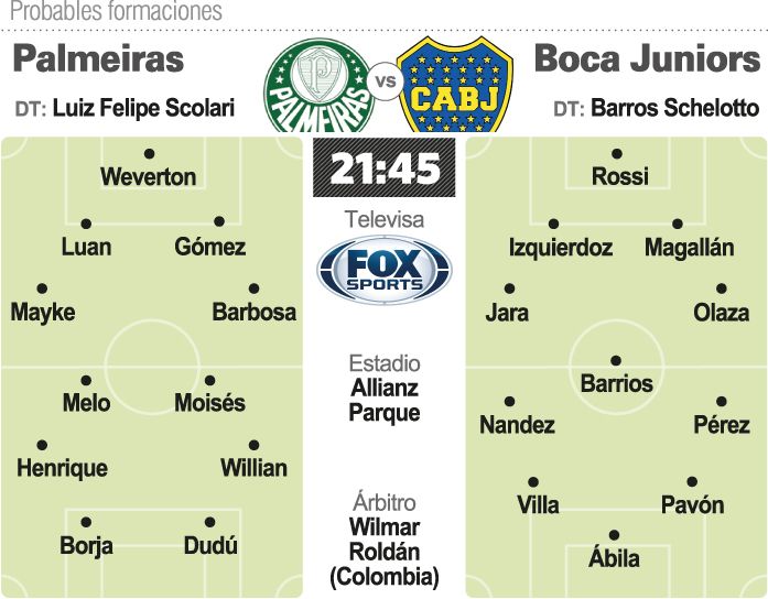 Lo cierto es que Boca, que había eliminado en octavos de final a Libertad de Paraguay y en cuartos a Cruzeiro de Belo Horizonte, intentará repetir la actuación sólida en defensa que mostró en "La Bombonera" y hará un solo cambio, que será el ingreso del colombiano Sebastián Villa por Mauro Zárate, mientras que el "9" seguirá siendo Ramón "Wanchope" Ábila pese a los goles del "Pipa" Benedetto.