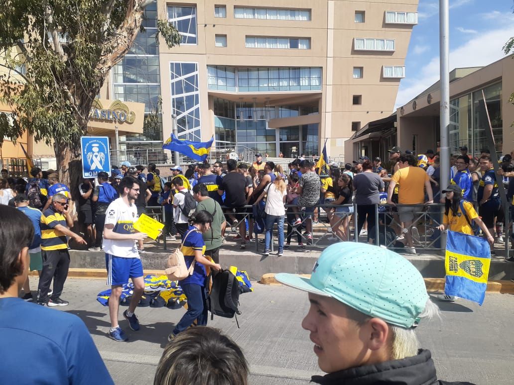 Minutos antes de las 17 y bajo un sol tremendo que elevó la temperatura hasta los 33 grados, Boca arribó a San Juan. El flamante campeón de la Liga Profesional fue recibido por cientos de fanáticos en la previa de la semifinal por Copa Argentina y los jugadores devolvieron ese cariño.