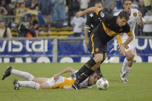 Cristian Chávez encontró a Martín Palermo, quien bajó la pelota y sacó un potente remate que se fue apenas afuera.
