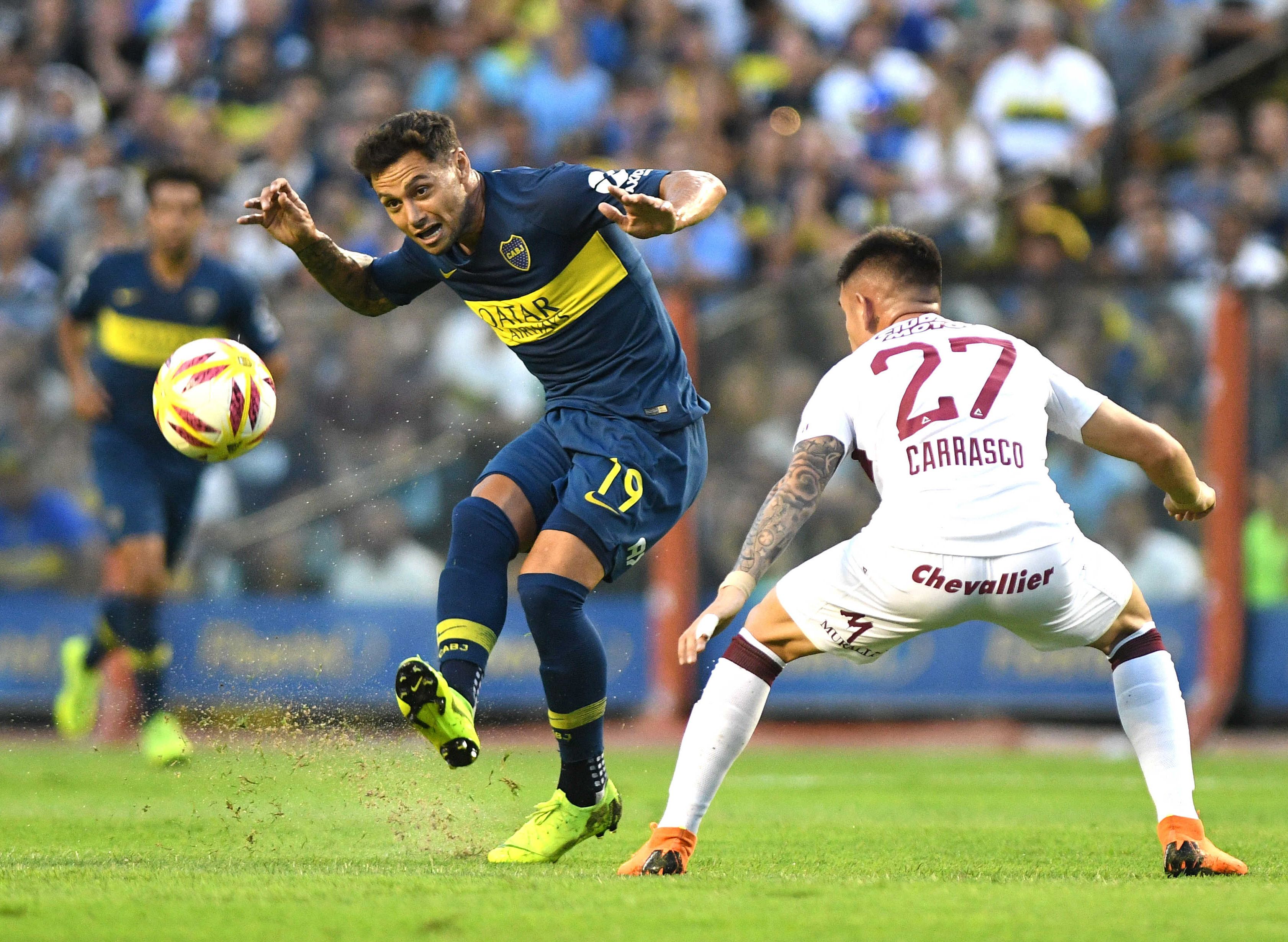 Boca Juniors (35 puntos) continúa a la expectativa para luchar por el título en la Superliga, al derrotar anoche a Lanús (24) por 2-1, en partido disputado en la Bombonera por la fecha 19. El equipo dirigido por Gustavo Alfaro, que está invicto en su corto ciclo de cinco cotejos (tres triunfos, dos empates), todavía no muestra las ropas de candidato y adolece de un funcionamiento colectivo ideal para treparse a una vanguardia que tiene a 10 puntos.