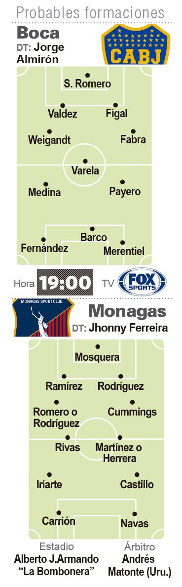 Boca, que obtuvo en forma anticipada la clasificación a octavos de final en la Copa Libertadores, recibirá hoy a Monagas, de Venezuela, con la premisa de asegurar el primer puesto del Grupo F, algo que logrará si gana o empata sin depender del resultado del partido entre Colo Colo y Deportivo Pereira.