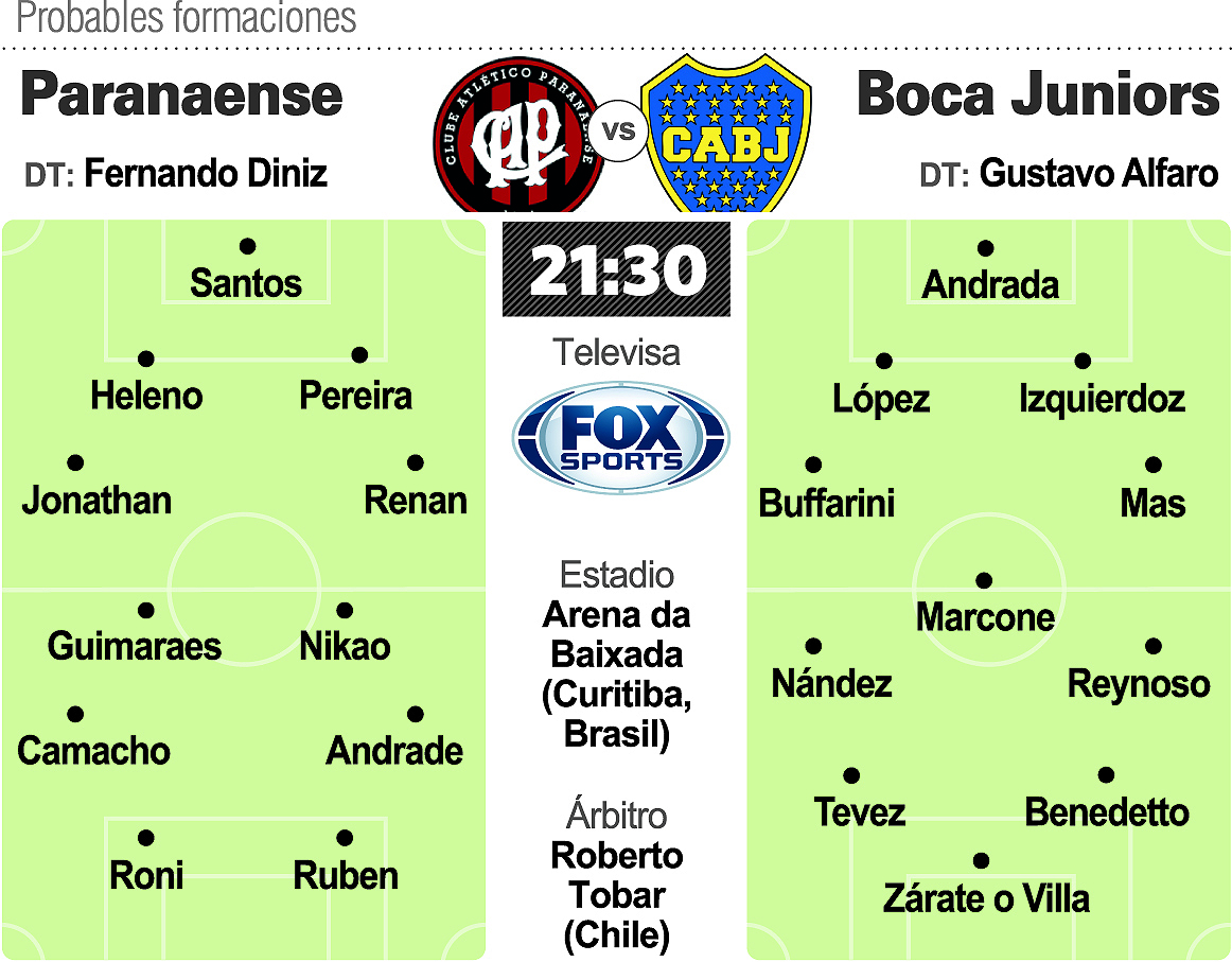El uruguayo Nández y Benedetto fueron preservados por el entrenador Gustavo Alfaro en la victoria del viernes pasado ante Banfield por 2 a 0 en La Bombonera por Superliga. Tampoco estará el delantero Ramón Ábila, quien padece un desgarro en aductor derecho. El ‘Xeneize‘ se entrenó durante la semana en Ezeiza en una cancha con césped sintético para adaptarse a la superficie del estadio del Paranaense que cuenta con una capacidad para 45.000 espectadores.