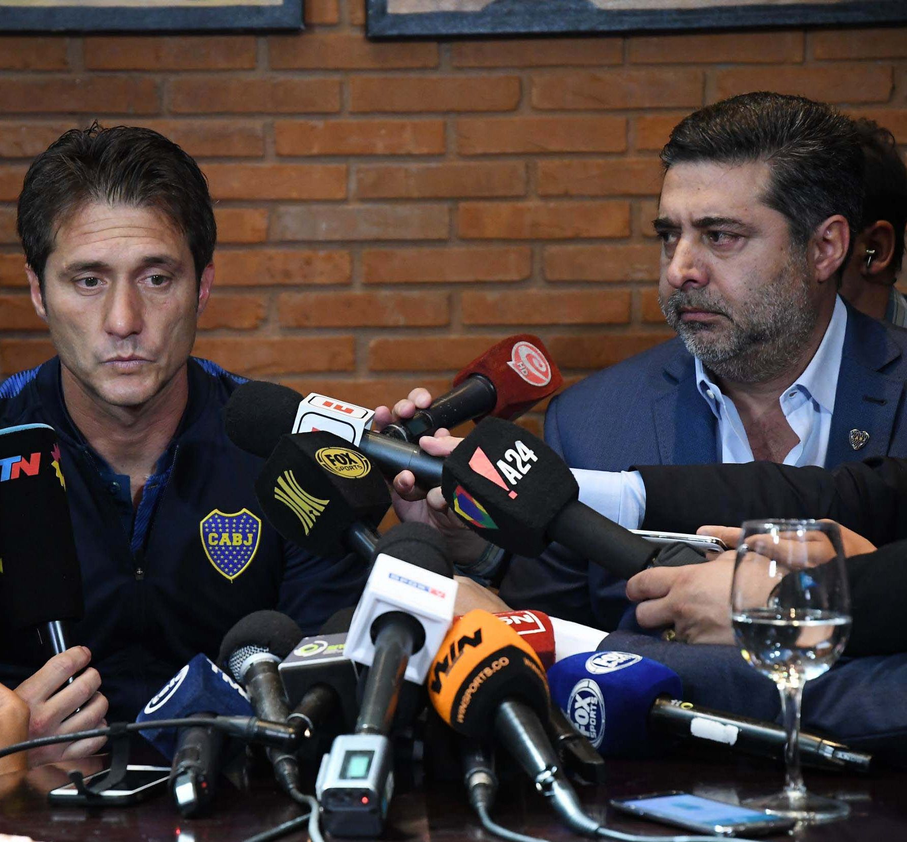 Ya teniendo la suspensión consumada, Angelici con el entrenador, Guillermo Barros Schelotto, dieron sus opinones en una breve conferencia de prensa.