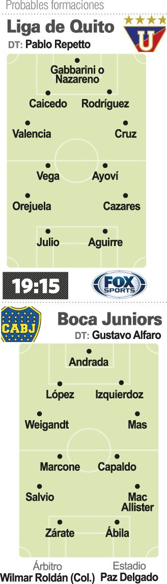 Boca Juniors buscará dar el primer paso hacia las semifinales de la Copa Libertadores de América, cuando visite a la ecuatoriana Liga Deportiva Universitaria en la altura de Quito, en el choque de ida de los cuartos de final. El encuentro se jugará en el estadio Rodrigo Paz Delgado de Quito desde las 19.15 (hora argentina), contará con el arbitraje del colombiano Wilmar Roldán (el venezolano Jesús Valenzuela estará a cargo del VAR) y será televisado por Fox Sports.