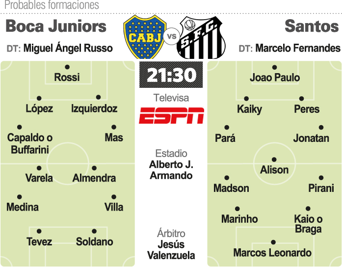 El partido de hoy, correspondiente a la segunda fecha del Grupo C, tendrá lugar desde las 21.30 en La Bombonera, con el arbitraje del venezolano Jesús Valenzuela y transmisión de ESPN.
