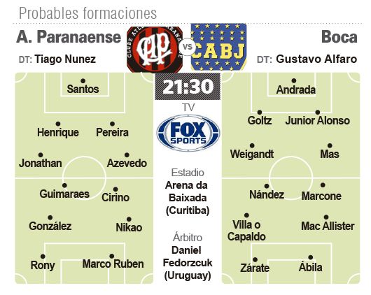 Boca Juniors comenzará a desandar hoy su camino en los octavos de final de la Copa Libertadores cuando visite en Curitiba al siempre peligroso Athlético Paranaense, en el cruce de ida de la llave que se definirá en "La Bombonera".