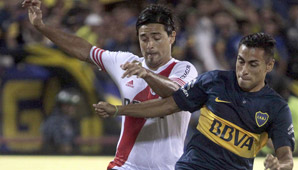 Los suplentes de Boca vencieron anoche a los titulares de River por 1-0 en el primer superclásico del año, jugado en Mar del Plata ante más de 35 mil personas. El único gol del conjunto de Rodolfo Arruabarrena lo convirtió el mediocampista Franco Cristaldo, a los 17 minutos del primer tiempo. Desde el inicio salió un partido friccionado, ‘de dientes apretados‘, con algunos destellos de buen juego, pero con pocas llegadas. Si bien Boca asumió el protagonismo, fue River el que tuvo las mejores chances en el cuarto de hora inicial, a partir de errores conceptuales de la defensa rival, bien resueltas por Sara ante Teo Gutiérrez y Pisculichi. Pasados esos sofocones, el equipo de Arruabarrena se puso arriba en el marcador con un gol de Cristaldo, que tuvo una participación clave de Carrizo, quien estaba en posición adelantada. Antes y después del gol, Pitana debió expulsar a Gigliotti y a Vangioni, y sancionar un claro penal de Mercado a Burdisso. Lo de Gigliotti fue por ir de manera temeraria sobre Barovero en el inicio y lo de Vangioni fue por ir de forma desleal ante Pavón (le habría fracturado un dedo); en tanto que Mercado le aplicó un artero codazo a Burdisso.