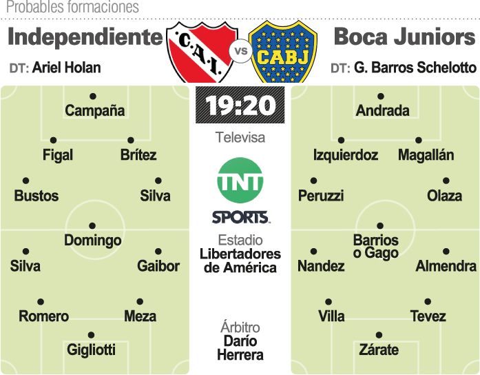 En Boca, el entrenador Guillermo Barros Schelotto pondrá lo mejor disponible con algunas excepciones, debido a que desea darle ritmo de fútbol a sus figuras, que jugaron por última vez el 11 de noviembre ante River (2-2) en la Bombonera, en la primera final de la Copa Libertadores. Del otro lado estará un clásico rival, con un esquema ofensivo que diagramó el DT Ariel Holan con la intención de quedarse con los tres puntos. En la última práctica de fútbol efectuada en el estadio Libertadores de América, el técnico del "Rojo" apostó a un dibujo táctico definido con cuatro defensores, tres mediocampistas y tres atacantes.