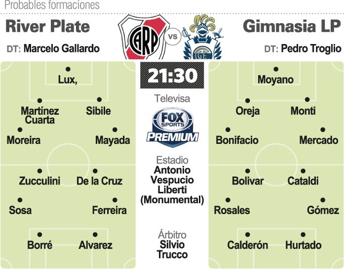 El Millonario y el equipo platense jugarán en el estadio Monumental, desde las 21.30. River y Gimnasia realizarán un trámite en la noche de Nuñez, el de enfrentarse por la Superliga con alineaciones alternativas con la mente en la gloria o el cadalso que les aguarda en pocos días. Este River-Gimnasia no se parecerá en nada al del pasado jueves en Mar del Plata y en el cual el equipo platense clasificó para la final de la Copa Argentina, luego de igualar 2 a 2 y vencer en la definición por penales; ambos equipos jugaron con titulares.